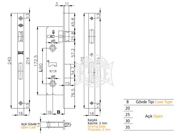 İÇ KAPI GÖMME KİLİDİ (DAR TİP) PVC, WC KAPILAR İÇİN.