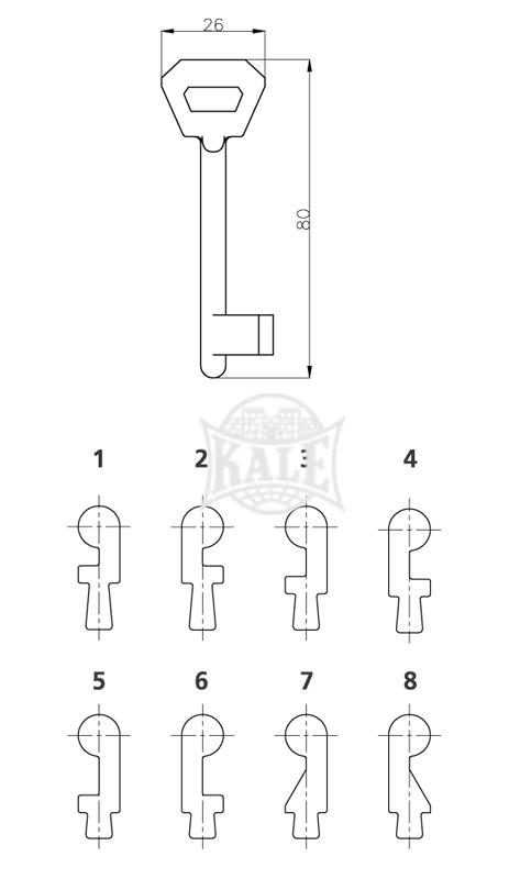 Anahtar:Özel zamak döküm. Pirinç kaplamalı.8 farklı profil.166 AR, 166 ARM, 266 P kilitleri için.